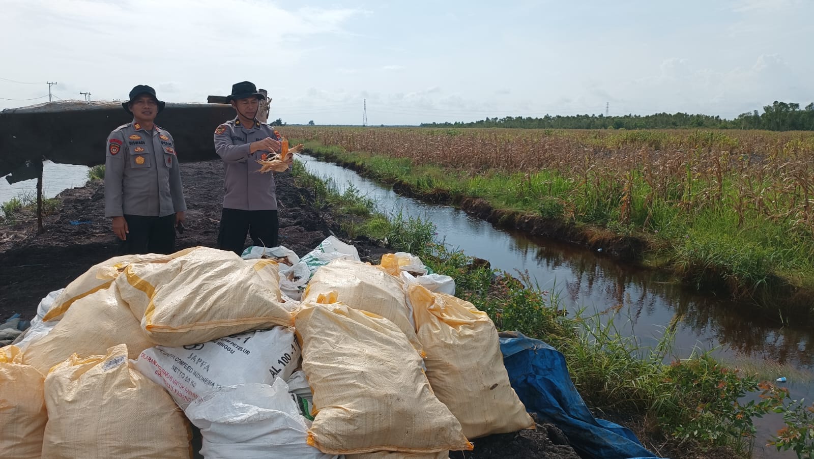 Polresta Banjarmasin saat proses panen jagung di lahan rawa kawasan Jalan Gubernur Syarkawi KM 5, Kabupaten Banjar.
